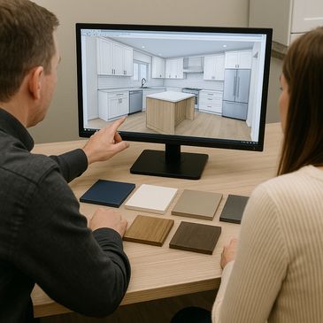 We listen first, then work with you in real time in the showroom to refine the design and finalize the details. With full-color renderings on a large screen, you can clearly visualize your space and move forward with confidence.